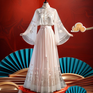 女性のための新しい中国風の衣装の完全なセット 2025 新しい国民風改良された漢服トップス超見栄えの良いスカート 2 点セット