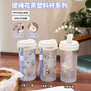 【ベアガール+ベアガールペンダント】600mlロープフラワーティープラスチックカップ