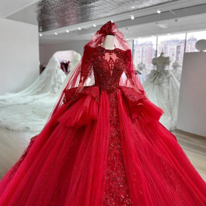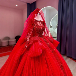 红色中式主婚纱2025新款新娘高级感复古宫廷风重工奢华长袖大拖尾