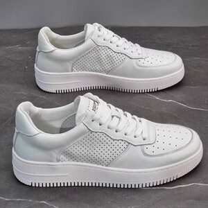 男士小白鞋百搭欧洲站男鞋小软皮板鞋男款潮鞋小众白色休闲鞋透气