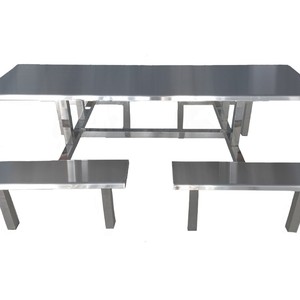 ステンレス鋼のダイニングテーブルと椅子 4 人用 8 人用学校レストラン学生食堂ダイニングテーブル工場ユニットスタッフ結合テーブル