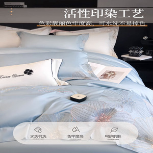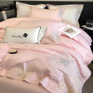 純綿長繊維綿ベッド4点セット 純綿100枚 軽い高級感と高級感のあるベッドシーツと掛け布団カバー 刺繍寝具4