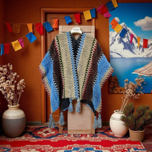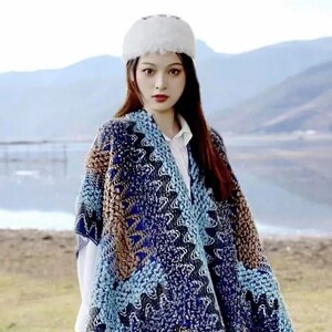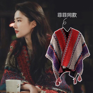 雲南麗江観光ニットストライプショール休暇着用レトロエスニックスタイルマントマントタッセルスカーフ