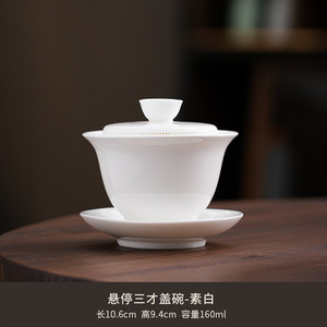 羊脂玉全瓷过滤盖碗茶杯陶瓷高端大号泡茶功夫三才碗白瓷茶碗茶具