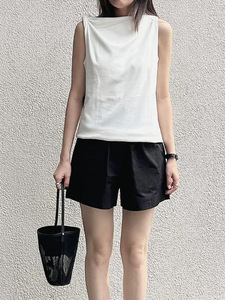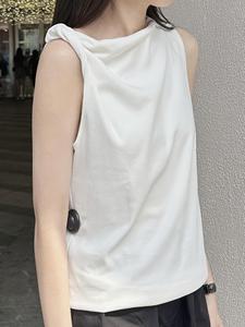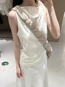 C's スリムフィット シングルショルダー ノットディテール コットン トップ ブラック ホワイト ベスト 25 夏新作 1286255001