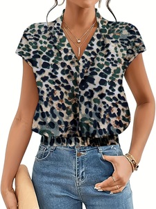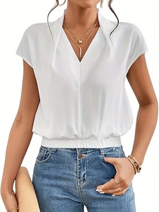 通気性のあるポリエステル素材のバットウィングスリーブVネックブラウス(洗濯機で洗えます)