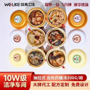 ソースファクトリー プルアウト式自熱スープ すぐに食べられる魚のアミガサ、霊芝、当帰、ロバ皮ゼラチン、黒鶏の煮込みスープ、インスタント自熱スープ