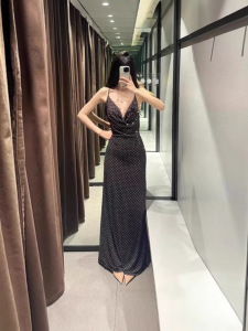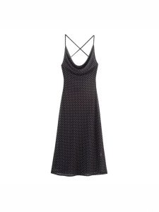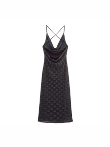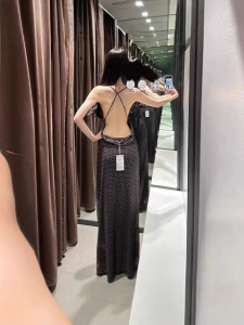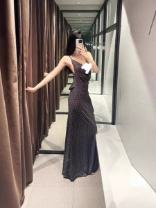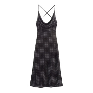 ZR 外国貿易卸売 2025 夏ヨーロッパとアメリカンスタイルのスイングカラーポルカドットファッションノースリーブサスペンダーロングドレス 0347315