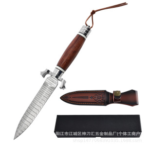 国境を越えた電子商取引の売れ筋ダマスカス鋼高硬度鋭い小型ストレート屋外ポータブル多機能ナイフ