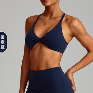 ヨーロッパとアメリカの女性用ヌードヨガウェア、タイトフィット、速乾性スポーツヨガブラ、アウトドアランニング、美しいバックツイストフィットネスブラ