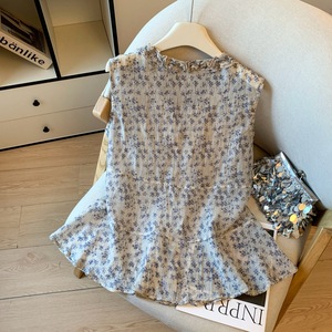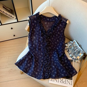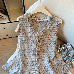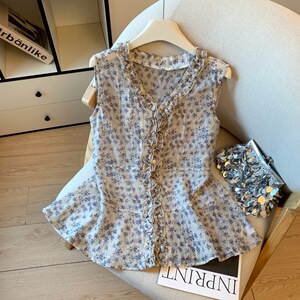 リアルショットフレンチスタイル花柄Vネックノースリーブベストシャツ女性用2025新作夏軽くてゆったりとしたトップス