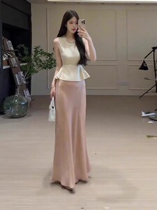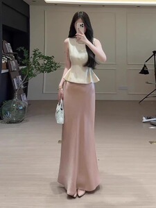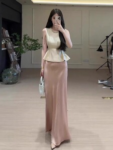 夏装新款贵气感穿搭气质名媛高级感无袖背心上衣缎面半身裙两件套
