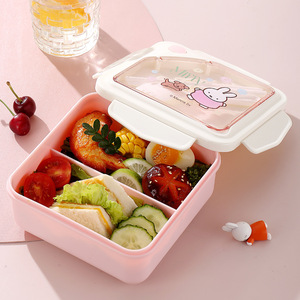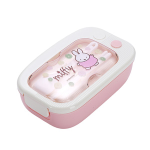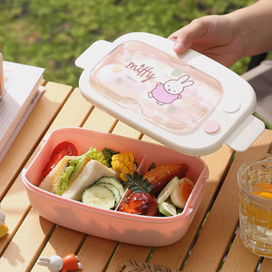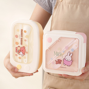 ミッフィー分割プラスチック弁当箱漫画学生電子レンジ対応弁当箱食器付きオフィスワーカーポータブル弁当箱