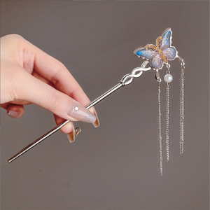 スーパーフェアリーバタフライパールタッセルヘアピン女性のニッチな気質後頭部ヘアピンモダンな中国のヘアアクセサリー