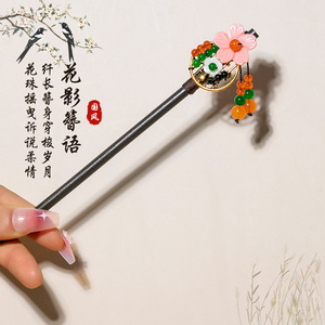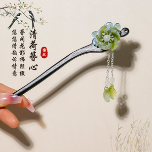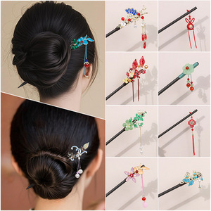 古代スタイルのタッセルヘアピン、模造黒檀ヘアピン、漢服アクセサリー、チャイナドレスヘアピン、ヘアアクセサリー、女性へのギフト