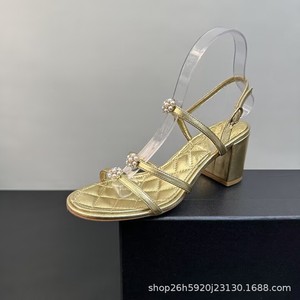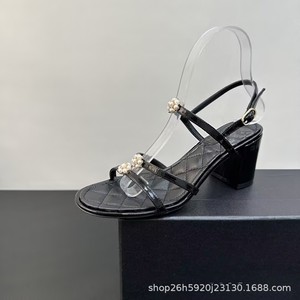 2025 春夏ファッションスタイル本革パールバックルワンライン厚いヒールフレンチ多用途オープントゥサンダル女性用