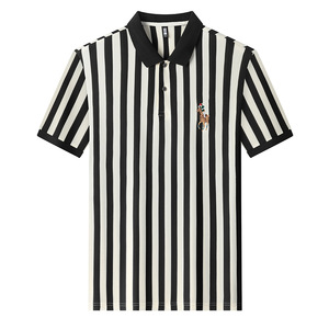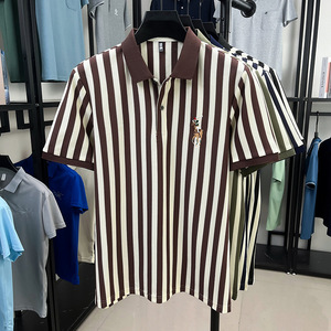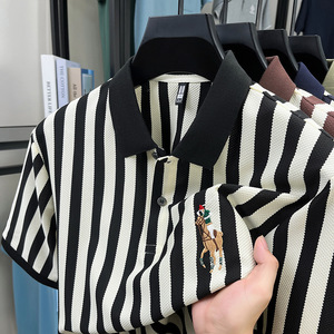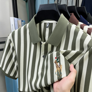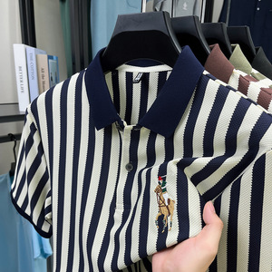 跨境码标竖条纹polo衫短袖男装轻奢夏季休闲刺绣翻领半袖t恤代发