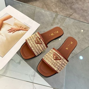 Pファミリー 三角ロゴ リネン織り フラットスリッパ レディース 外国貿易 ハイバージョン 2025 夏 カジュアル ワンライン オープントゥ