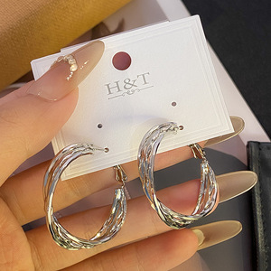 東大門イヤリングクロスイヤリング新しい人気のシルバー多層フープイヤリングゴールドサークルプレーンフープイヤリングクロスボーダー