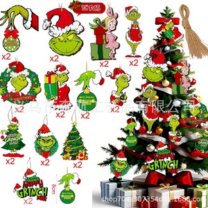 24件圣诞格林奇木制挂饰圣诞圣诞树装饰节派对用品手工制作