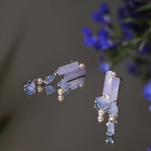 新しい中国風の夢のような青と紫のユニークなデザインのイヤリング不規則なファッションハイエンドの美白イヤリング女性のための 2025 新しいスタイル