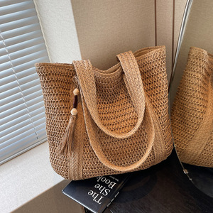 ショルダーバッグニッチストローバッグレディース新作トレンド大容量通勤トートバッグ海辺織ビーチバッグ大型バッグ