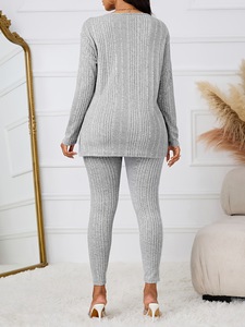 新しいソリッドカラーの多用途ニットVネックトップス(スリット入り)