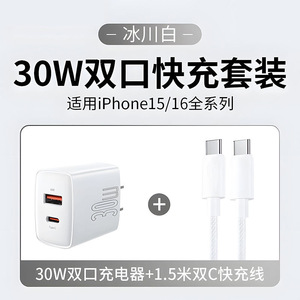 【15-16セット】30Wデュアルポート グレイシャーホワイト + 1.5m公式認定ダブルC編組急速充電ケーブル