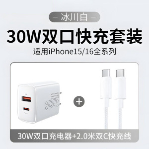 【15-16セット】30Wデュアルポートグレイシャーホワイト+2.0m公式認定ダブルC編組急速充電ケーブル