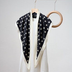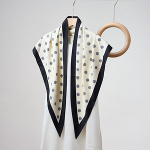 新しい多用途黒と白の水玉模様のプリント三角スカーフ日焼け止めショール模擬シルク装飾ベルト女性の三角スカーフ
