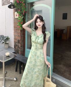 フレンチグリーンの花柄フリルドレス女性のための 2025 新しい夏のスタイル気質ウエストカバーヒップロングスカート