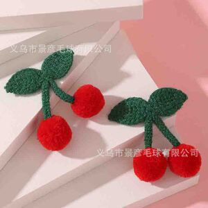 人気のニットレッドチェリーブローチアクセサリー diy 手作りジュエリー衣類帽子ウールアクセサリー衣類アクセサリー