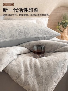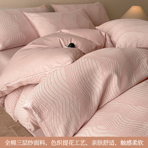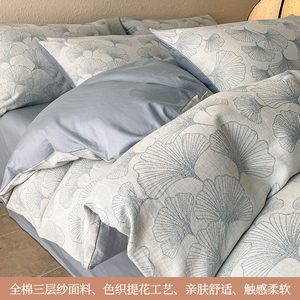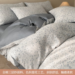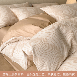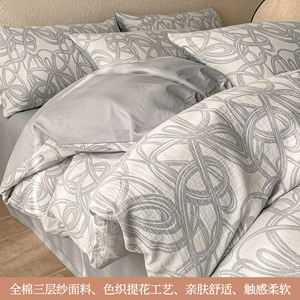 提花三层纱四件套纯棉100全棉被套双层纱布床单2025新款床上用品