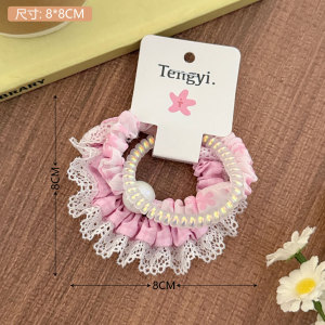 4 # 小さな新鮮なレースのヘアゴム - ピンク
