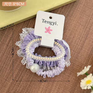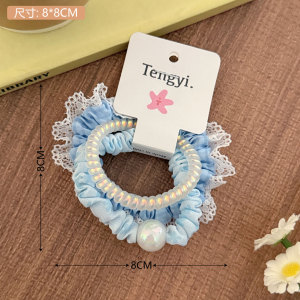 3#小さな新鮮なレースのヘアゴム - ブルー