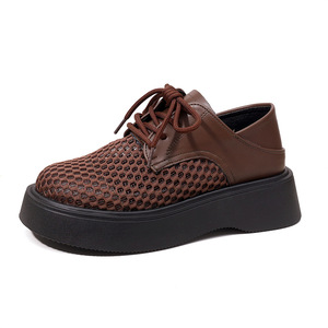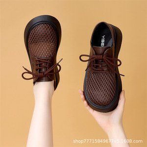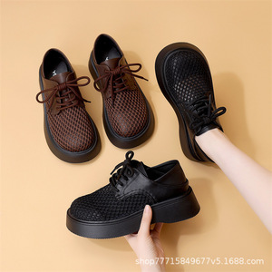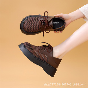厚底 2 層通気性メッシュローファー女性のための 2025 夏の新しいスタイル中空レースアップソフトソール多用途作業靴