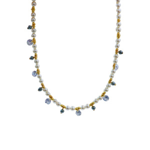 ヨーロッパとアメリカのファッションシンプルなレトロなジルコン石家真珠ビーズネックレスライト高級ハイエンド気質多用途鎖骨チェーン
