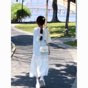 女子学生向けサマースーツ、おしゃれなフレンチニッチスリムトップス、半袖Tシャツ、スカート2点セット