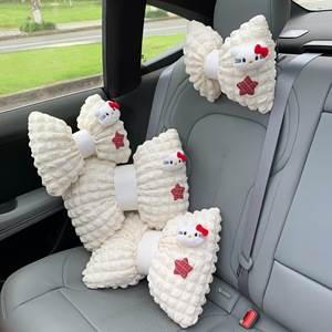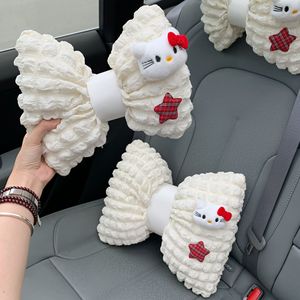 かわいいパフ猫車のヘッドレストインターネット有名人の車の腰クッション車の装飾女性の車の首保護シート枕
