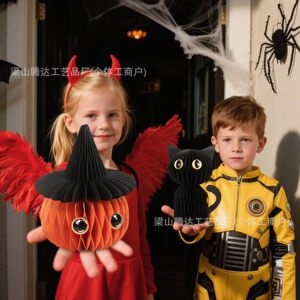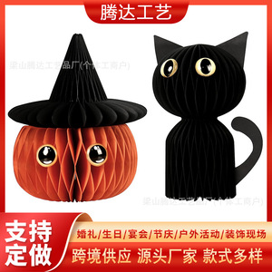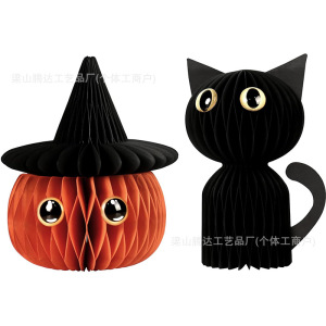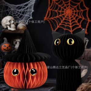 新しいハロウィン装飾カボチャハニカムペンダントハロウィン装飾カボチャ立体ハニカム黒猫ハニカム
