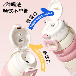 保温杯316不锈钢吸管水杯女生高颜值夏季双饮便携保冷杯子批发