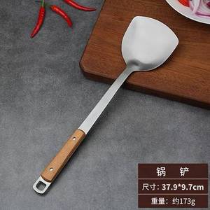 卸売ステンレス鋼スパチュラ肥厚 201 ステンレス鋼家庭用調理スパチュラ木製ハンドルフライパンスパチュラ調理ザル