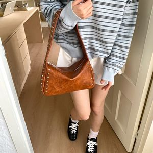 クロスボーダーレトロリベット脇の下バッグヨーロッパとアメリカのホットガールハイエンドハンドバッグパンクショルダーバッグ大容量コントラストカラーの女性のバッグ