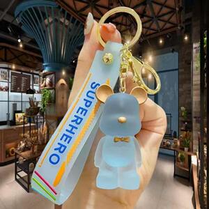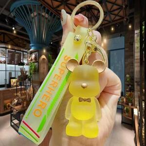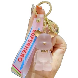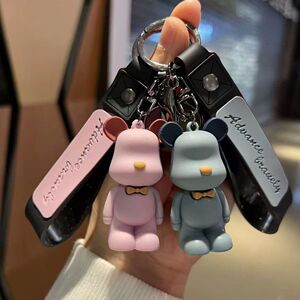 クリスタル蝶ネクタイクマキーホルダーかわいいガーリーハート暴力クマ車のキーチェーンカップルペンダントバックパックペンダント