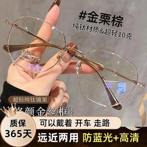 遠近両用老眼鏡、女性用超軽量純チタン金線薄縁メガネ、老眼用度付き、おしゃれなフレーム