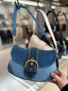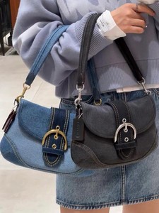 Koujia 高品質 25 年新しいハムプトンズハーフムーンバッグデニムレトロ脇の下ピーバッグシングルショルダークロスボディバッグ