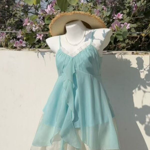 マーメイドラブソングロングスカートスーツヴィンテージレトロシフォントップスーツスリム夏