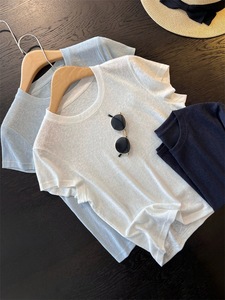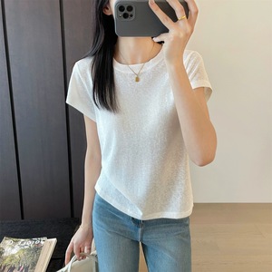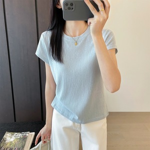 夏用の女性用テクスチャードショルダーソリッドカラーカジュアルラウンドネック半袖Tシャツ、ゆったり、多用途、スリム、通気性、薄い半袖