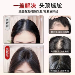 女性用前髪ウィッグ、自然で跡が残らない、白髪をカバー、増毛、ふわふわ頭頂部人工毛ウィッグ