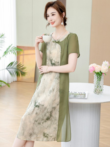 新款气质中老年夏季国风长款连衣裙子新中式妈妈夏装女减龄连衣裙